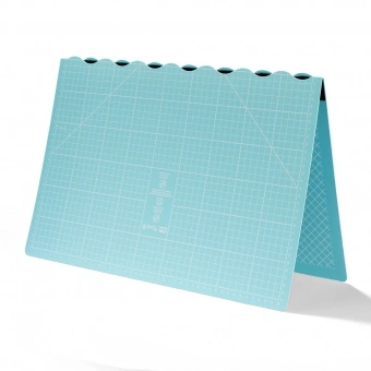 Die faltbare Prym Love Rollschneideunterlage 45 x 60 cm ist auf 30 x 60 cm zusammenklappbar und auf der Vorderseite mit einer cm-Skala bedruckt.