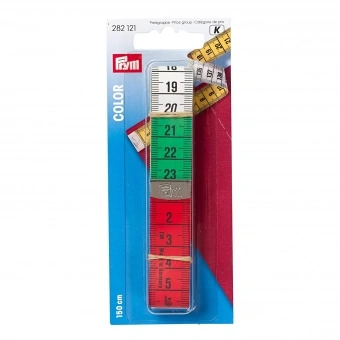 Ein Maximum an Übersicht bietet das PRYM Maßband Color mit seiner dreifarbig aufgeteilten Skala. Die schwarze Zentimeterskala ist auf den Hintergrundfarben Rot, Weiß und Grün sehr gut erkennbar und ermöglicht dadurch ein präzises Arbeiten. Die gelbe Rückseite gewährt ein weiteres Maß an Flexibilität, welche mit einer Skala in Zentimeter bedruckt ist. Die Länge von 1,50 m ermöglicht eine unkomplizierte und einfache Handhabung. Für eine längere Lebensdauer sorgen die Einfassungen aus Metall an beiden Enden sowie die Bandstärke von 0,5 mm.