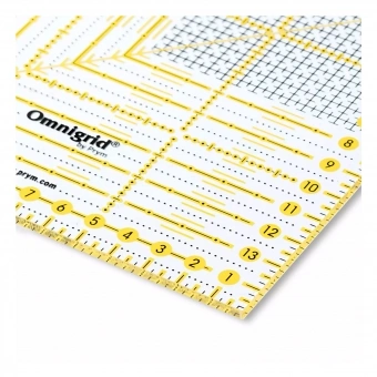 Ein gelb/schwarzer Rasterdruck ermöglicht genaue Markierungen auf hellen und dunklen Stoffen. Das dicke, widerstandsfähige Material gewährleistet eine sichere Führung von Rollschneidern und Ziehmessern. Ein absolut präziser Laserdruck auf der Unterseite des Lineals schliesst optische Verzerrungen aus. Dieses Lineal ist für Rechts- und Linkshänder geeignet.