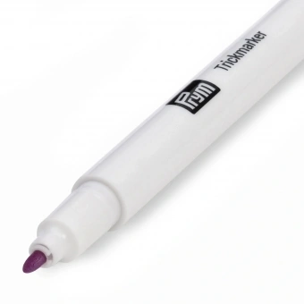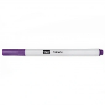 Der PRYM Trick Marker – selbst löschend eignet sich besonders zum Anzeichnen von Markierungen, die nach Nähen, Sticken oder Quilten wieder verschwinden sollen. Der violette Marker wird mit der Mine senkrecht nach unten gelagert, um ein Austrocknen zu vermeiden und einen dauerhaften Schreibfluss gewährleisten zu können. Die Markierungen verschwinden, je nach Beschaffenheit des Stoffes, nach einiger Zeit wie von Zauberhand von selbst. Empfohlen wird die Markier- und Entfernungseigenschaften vorab an einem Stoffmuster zu testen.