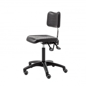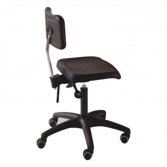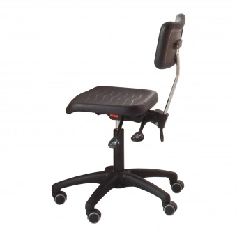 Die gepolsterte Sitz- und Rückenlehne aus Polyurthanschaum ist besonders pflegeleicht und die lastabhängigen Rollen runden diesen Stuhl ab.
