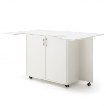 Der RMF TWIN fold mit einer erweiterbaren Arbeitsfläche auf 1600 mm x 1060 mm ist ein Nähtisch mit 90° drehbarem Liftbrett, mit dem es sich ganz normal nähen oder durch die 90° Drehung wie mit einer Longarm-Quiltmaschine quilten lässt. Er besitzt praktische Einschiebetüren und zwei gekoppelte elektronisch gesteuerte easy-Softtech Lifte mit denen sich die Nähmaschine in die optimale Position bringen lässt. Mit dem eingelassenen i-Touch Bedienfeld, dass Lock- und zwei Memoryfunktionen besitzt, ist das Auf und Ab des Lifts ein Kinderspiel. Durch den einheitlichen simply-5 Ausschnitt ist dieses Nähmöbel mit allen Maschinentypen kompatibel. Praktischerweise beinhaltet das Möbel bereits eine 4-fach-Steckdosenleiste für Nähmaschine, eine Nähleuchte oder andere Elektrogeräte.