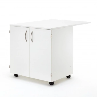 Der RMF Rollschrank mit zwei Türen ist der ideale Aufbewahrungsplatz für größeres Nähzubehör wie Vliese, Stoffe und Garnboxen. Die Arbeitsfläche lässt sich bei den EXTEND-Möbeln um das doppelte erweitern, sodass eine Gesamttiefe von 1000 mm entsteht. Die Erweiterungsplatte wird von hinten hoch geklappt und mithilfe einer herausklappbaren Stütze stabil gehalten. Der Schrank mit zwei Türen lässt sich perfekt mit weiteren Möbeln aus der EXTEND-Serie nach rechts oder links erweitern oder kann als einzelnes Möbelstück im Nähzimmer aufgestellt werden.