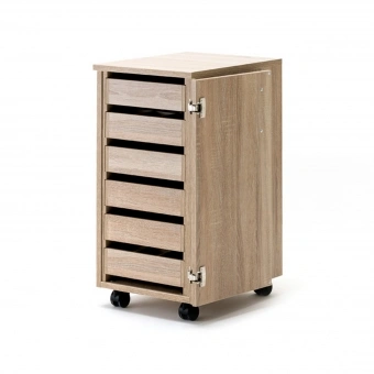 Der RMF Schubladen-Rollcontainer ist die passende Ergänzung zu dem Nähmöbel aus der BASE-Serie. Er lässt sich mit verschiedenen Möbelstücken kombinieren oder kann auch einzeln als ideales Aufbewahrungsmöbel für das Nähzubehör aufgestellt werden. Die drei Schubkästen mit Einteilung sorgen für einen ordentlichen Aufbewahrungsplatz von kleinem Nähzubehör, die drei Schubkästen ohne Einteilung bieten Platz für größere Accsesoires. Bei dem Möbelstück ist die Tür rechts angebracht und kann mit Rollcontainern oder weiteren Nähmöbeln aus der Serie BASE nach links erweitert und kombiniert werden.
