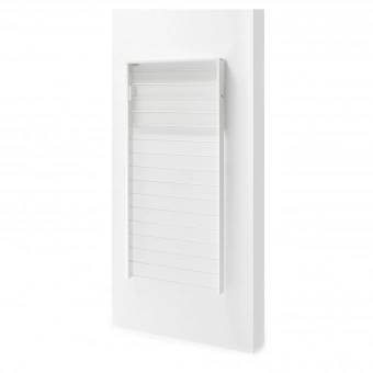 Das RMF Stoffaufhängeregal HANGER mit 16 Aluminiumstangen eignet sich optimal zur Aufbewahrung von Stoffen, Nähprojekten oder Vliesen. Um Stoffe zu entnehmen oder das Hängergal aufzufüllen, muss das Regal lediglich nach vorne geklappt werden und die aufgehängten Stoffe gleiten aneinander vorbei. Es lässt sich einfach an jede Wand oder Tür montieren. Ein besonders platzsparender Platz wäre auch hinter der Zimmertür.