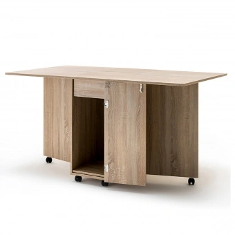 Der RMF Zuschneidetisch TAILOR MOVE ist in fünf verschiedenen Holz-Dekornachbildungen und einer Betonoptik mit Korpus weiß erhältlich. Es gibt auch die Möglichkeit eines Zweitdekors für die Front, die gegen Aufpreis ausgewählt werden kann. Als Beispiel: Korpus Eiche Sonoma mit Front Kristallweiß.