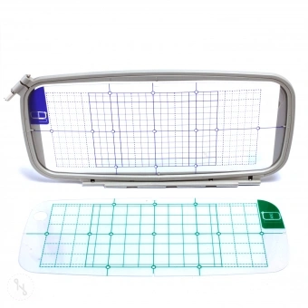 Dieser Stickrahmen ist ein Versatzrahmen, Sie können hier geteilte Dateien so positionieren dass diese zusamen die Fläche von 180 x 300 mm einnehmen ohne dass Sie das Stickgut neu einspannen müssen.
