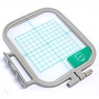 Dieser Stickrahmen in der Größe von 100 x 100mm ist optimal für mittelgroße Stickmotive, dank der Schablone mit dem praktischen Raster kann das Stickgut präzise positioniert werden.