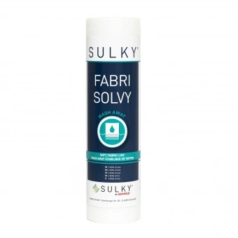 Der Sulky Fabri Solvy ist ein temporärer gewebeähnlicher und wasserlöslicher Stabilisator, welcher entweder aufgelegt oder untergelegt werden kann. Durch seine Festigkeit lässt er sich während des Stickvorgangs problemlos verarbeiten. Das Vlies lässt sich leicht abwaschen und ist hitzebeständig gegenüber der Wärmeentwicklung des Nähmaschinenbettes.
